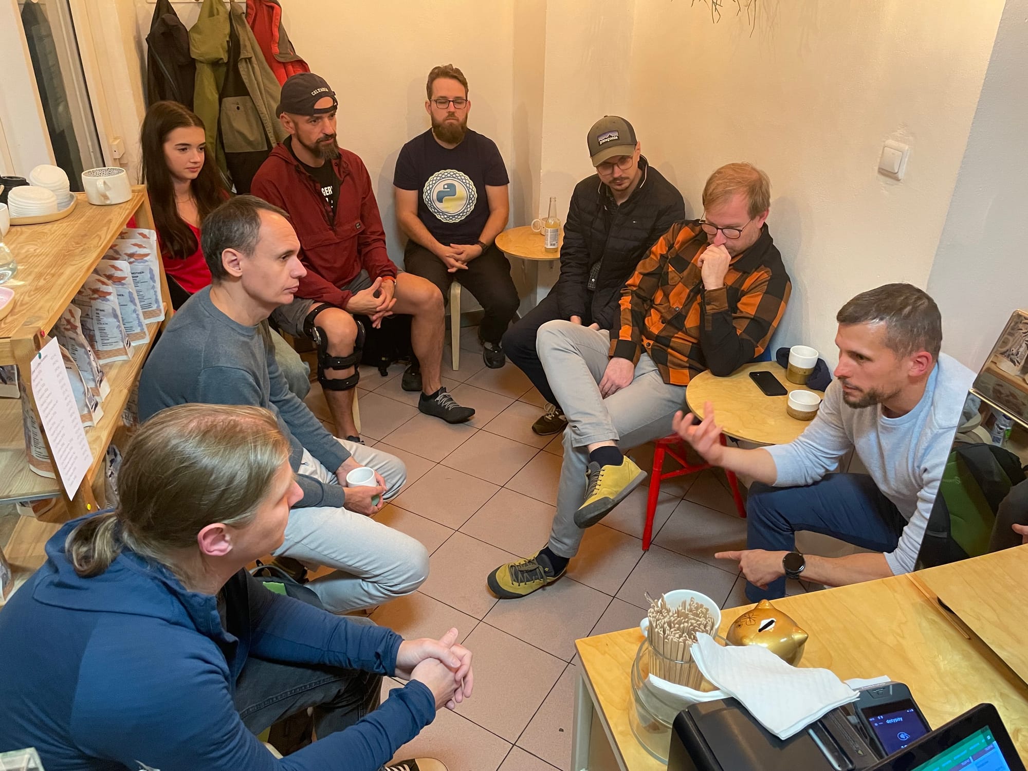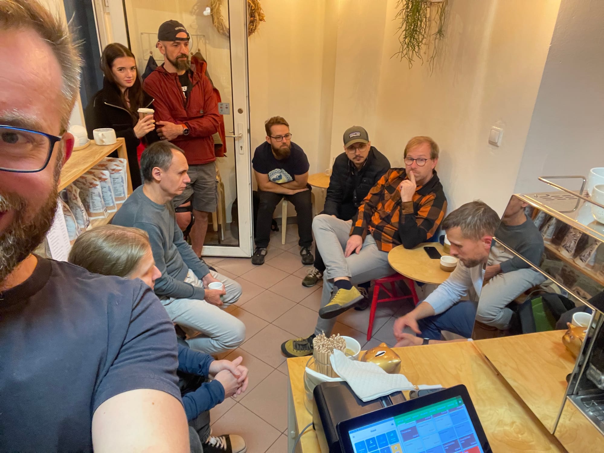 Kafe, kód a ideály. Dej si pauzu, přijď doplnit kofein, pozdrav se s IT lidmi, nech se inspirovat a prober své nápady. Táta vaří kafe, host vaří myšlenky, ty vaříš pohodu.